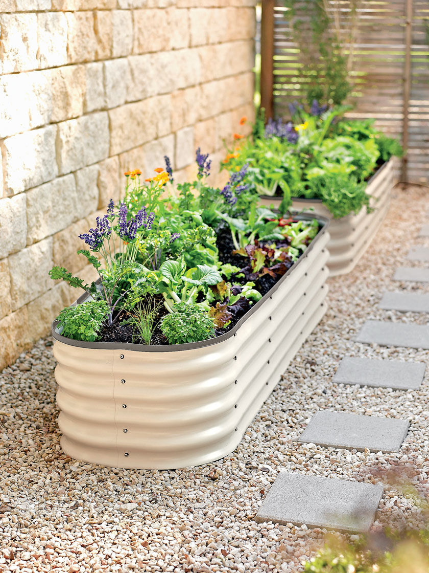 Measuring 2m x 0.6m x 0.45m high, these rolled steel garden beds are great for growing on top of cobble stones to create a sleek, modern design.