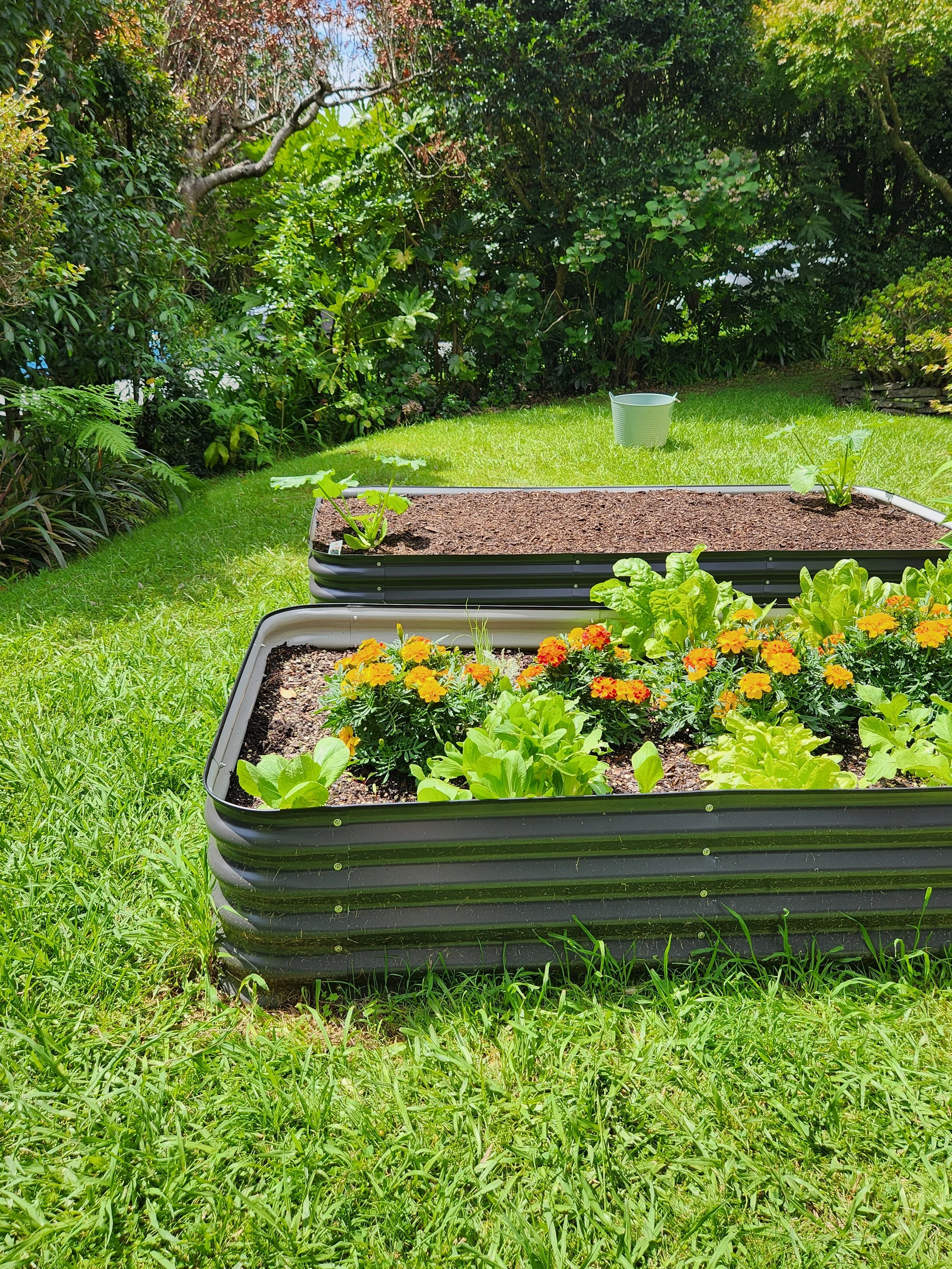 These beautiful, reclaimed sleeper gardens are perfect for ornamentals although contain creosote which is not ideal for growing food.